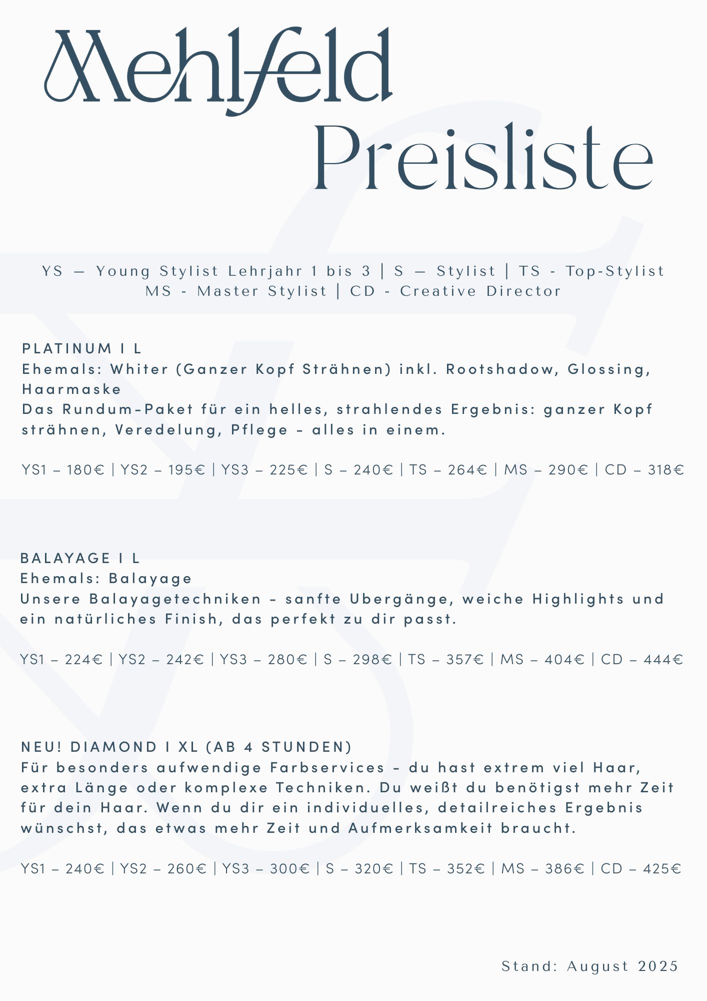 Klare Preise, volle Transparenz - bei MEHLFELD weißt du genau, was dich erwartet.